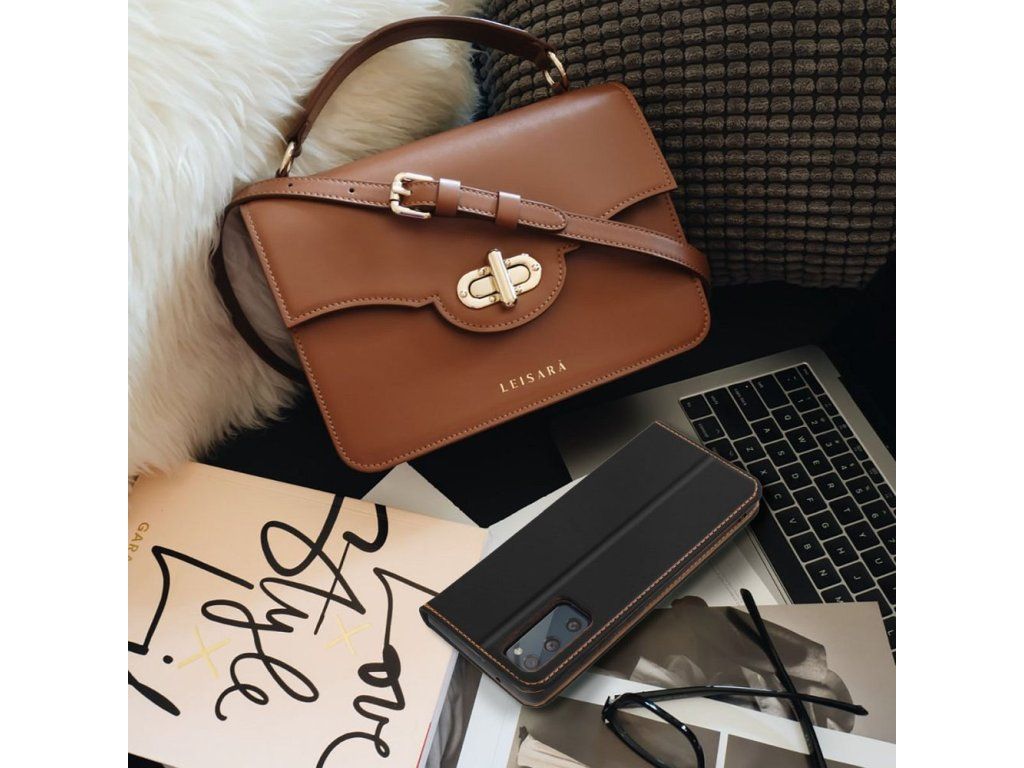 Pouzdro má výřezy pro funkční tlačítka telefonu, což umožňuje používat zařízení bez sejmutí z krytu. Pouzdro umožňuje uspořádat telefon tak, abyste mohli pohodlně sledovat video nebo prohlížet fotografie (funkce TV stojanu). Materiál: přírodní kůže, TPU (termoplastický polyuretan)