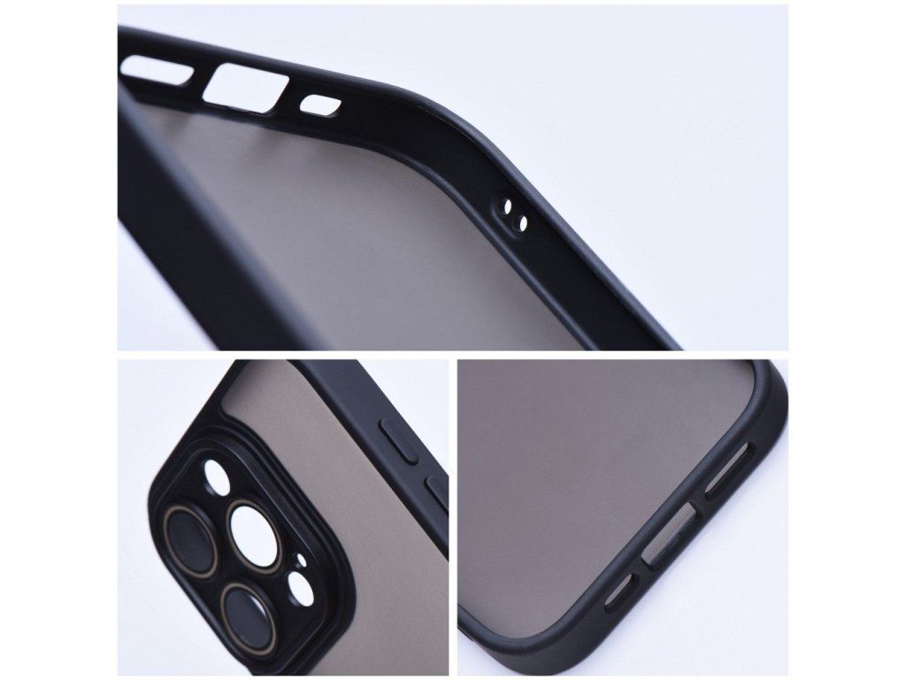 Nejcitlivější část telefonu zachovává kromě zvýšeného okraje také precizní výřezy a sklo čočky (v případě potřeby je lze jednou sundat). Materiál: TPU (boční hrany, jednoduchý odlitek), plast (záda), plast (rámeček ostrůvku fotoaparátu a tlačítka - lakováno olejovou barvou) Dostupné barvy: meruňková drť, pistácie, tmavě zelená, černá, ocel, tmavě modrá, fialová
